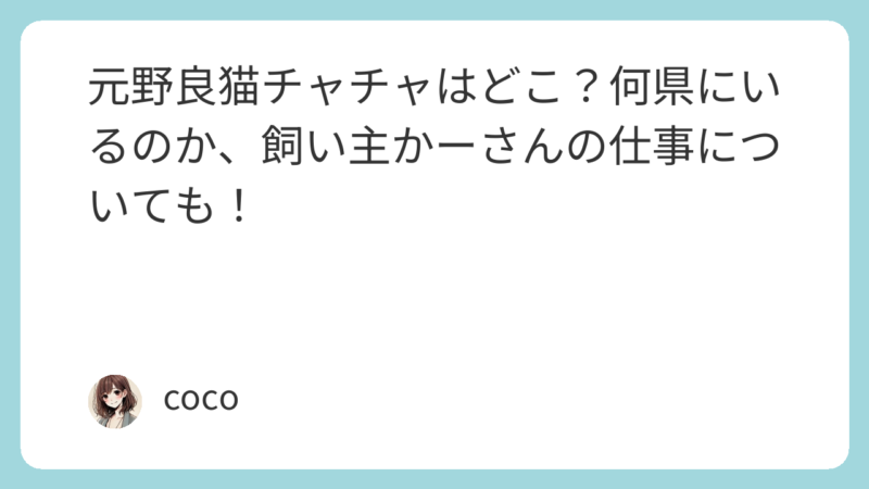 元野良猫チャチャはどこ?何県にいるのか、飼い主かーさんの仕事についても!