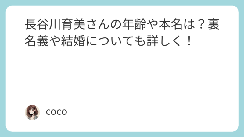 この記事では、長谷川育美の年齢・本名・身長・出身・大学・裏名義・結婚の有無について紹介しました。