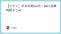 | 12月31日(大晦日) | 短縮営業(〜19:00閉店) | 惣菜・精肉コーナー混雑 |
