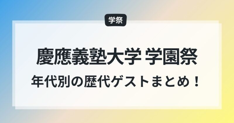 この記事では、2025年の慶應義塾大学の学園祭「三田祭」の最新情報とともに、歴代ゲストの一覧と傾向について紹介してきました。
