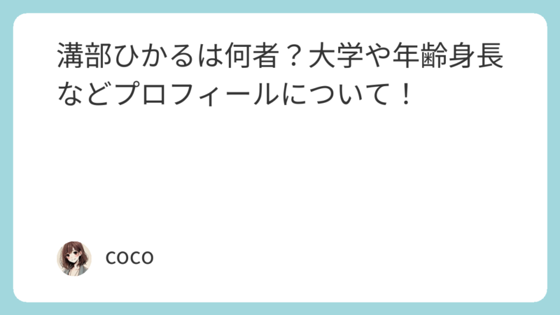 ここでは溝部ひかるさんが何者か、年齢や学歴、背景エピソードも含めて紹介していきます。