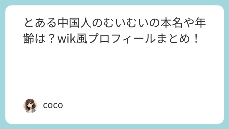 この記事ではとある中国人のむいむいについて紹介しました。