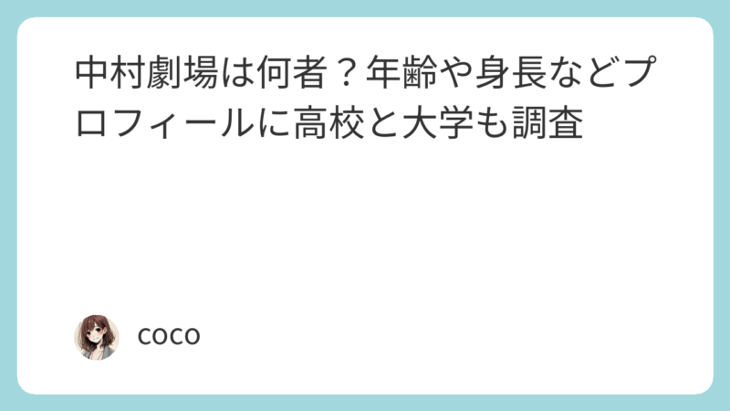 中村劇場の年齢や経歴など徹底調査しました。