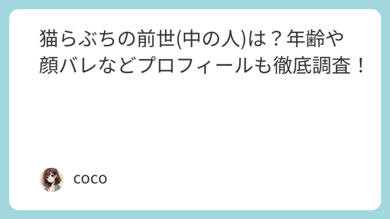 この記事では猫らぶちの前世(中の人)、顔バレ、年齢やプロフィール、ママについてまとめました。