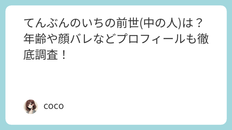 この記事では、てんぶんのいちの前世(中の人)、顔バレ、年齢、ママについてまとめました。中の人や素顔は非公開ですが、声と会話だけで関係性を感じさせる表現力が、他にはない魅力になっています。