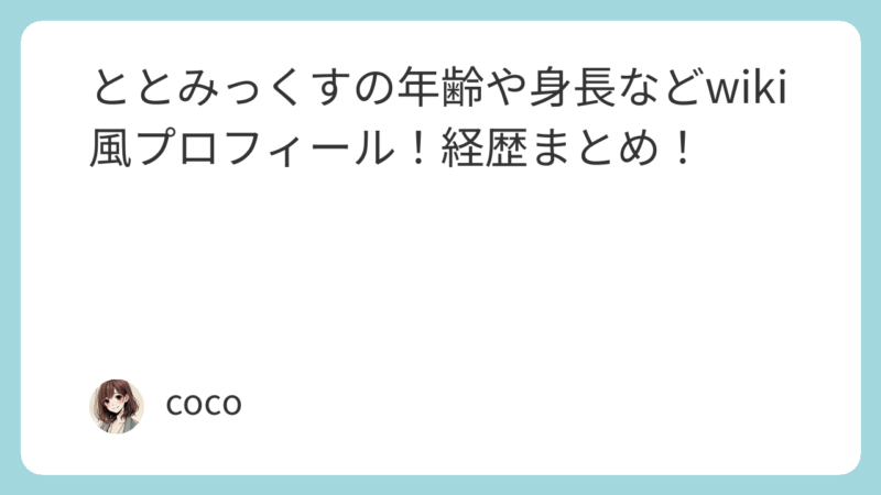 今回は、ととみっくすさんの素顔や年齢についてまとめてみました!