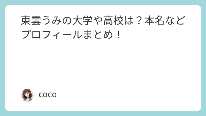 この記事では、東雲うみの大学・高校・プロフィール・年齢・本名までまとめてみました!